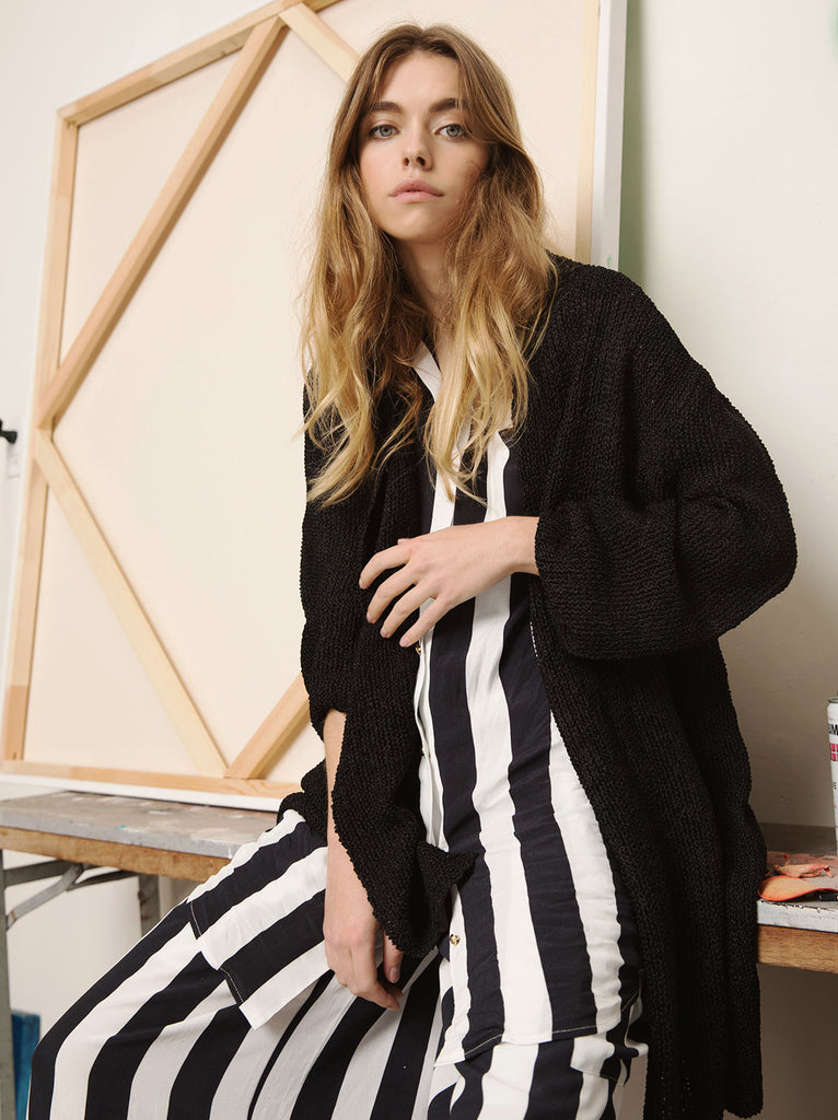 We love a solid chunky cardigan to layer over all out outfits, so we've made a woven knit cardigan that screams effortless. Wear it open or even tied up into a wrap dress with a belt.