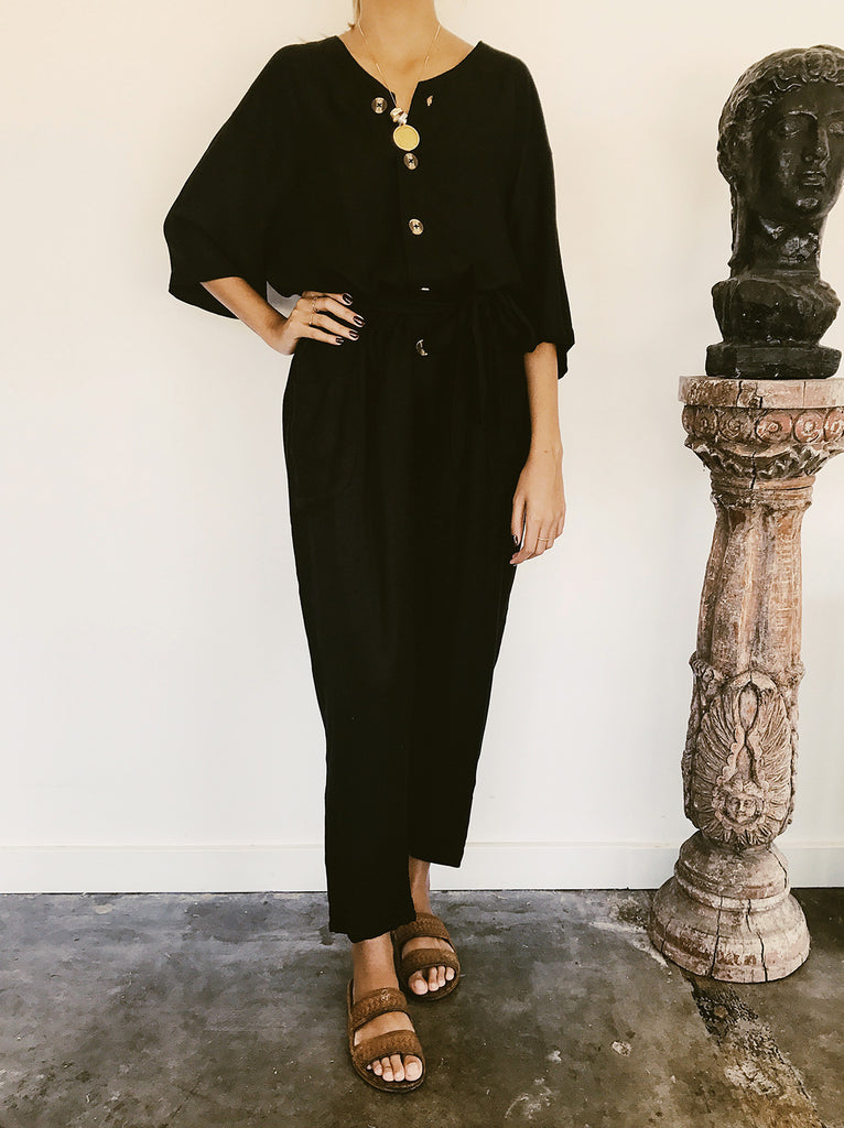 We're all for easy, all-in-one outfits that make dressing in the morning simple and easy. Continuing our signature soft viscose twill fabric, the Avalon Boiler Suit is something you will find yourself living in! Finished with large tortoise shell buttons and pockets, this is not your typical structured piece, but one that's cool, comfy, forgiving, and goes with just about any shoe.