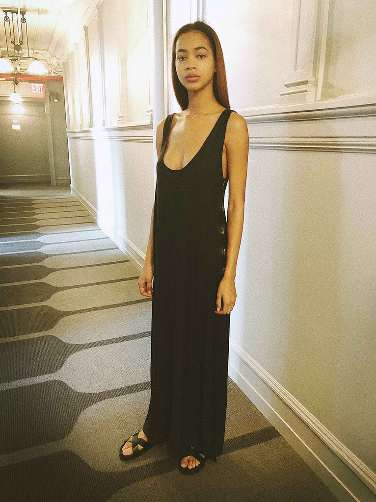 We can always use another black dress right? With a low scooped back and loose fitting silhouette, our Avalon Maxi shows just enough skin to make her the perfect day to night dress. But don't forget about her functional buttons that you can undo to wear as an open top over jeans!